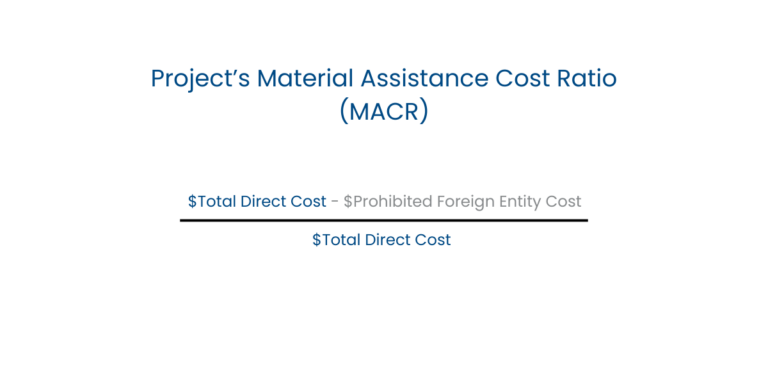 The calculation for “too many” components is below. The required Material Assistance Cost Ratio (MACR), which is the percentage of non-FEOC labor and materials used, varies by credit and technology. Refer to the IRS notice for specifics.